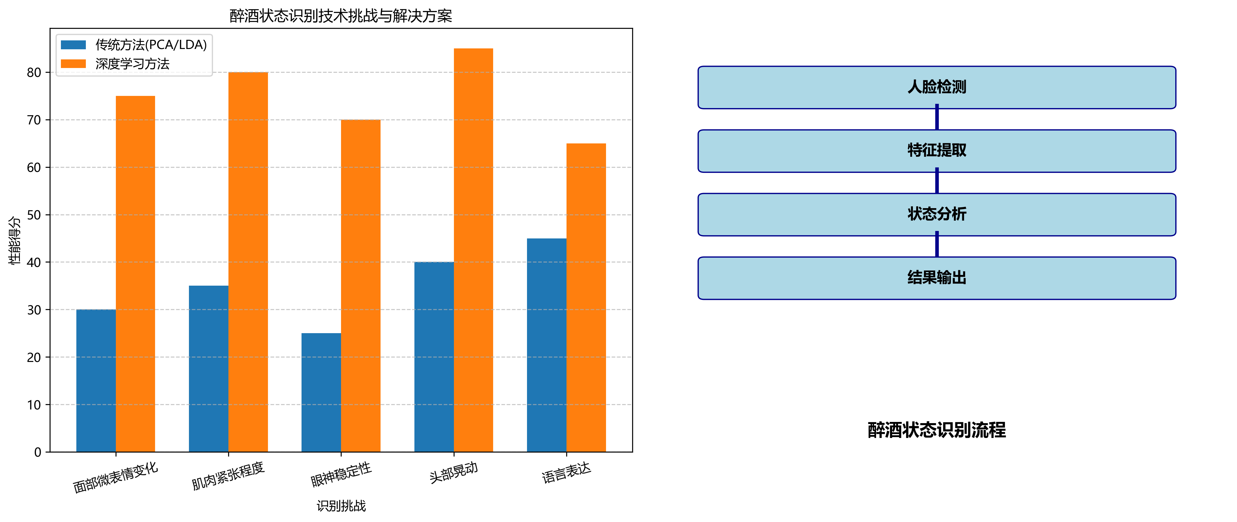醉酒状态识别作为计算机视觉领域的一个细分任务,面临着诸多技术挑战。与普通的人脸检测和识别不同,醉酒状态识别需要捕捉面部微表情变化、肌肉紧张程度、眼神稳定性等细微特征。传统的人脸识别技术如PCA、LDA等方法在处理这类细微变化时表现有限,而基于深度学习的方法则能够更好地提取这些特征。
