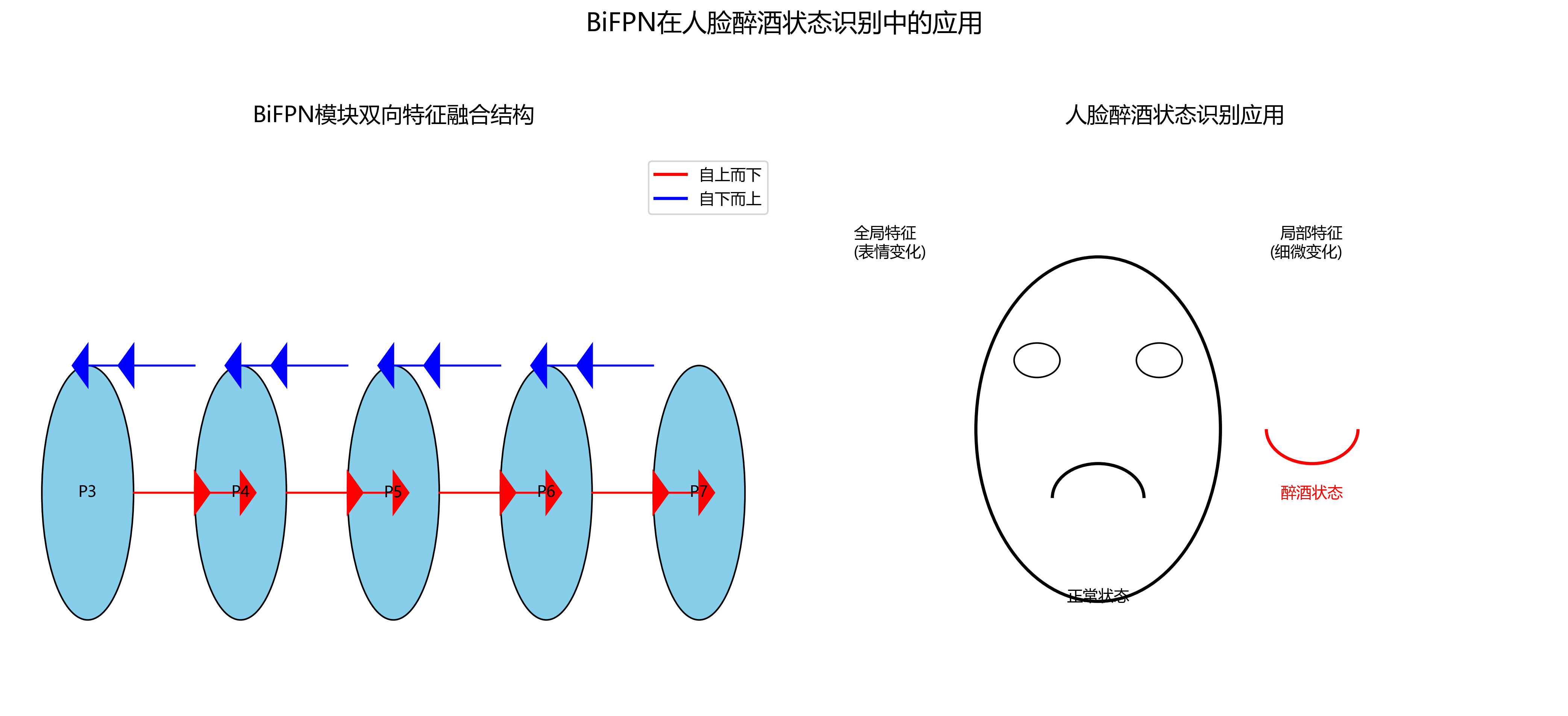 BiFPN模块通过双向特征融合,使得不同层次的特征能够更好地交互,从而提取更丰富的语义信息。在人脸醉酒状态识别中,这种机制有助于模型同时捕捉面部整体的表情变化和局部的细微特征。