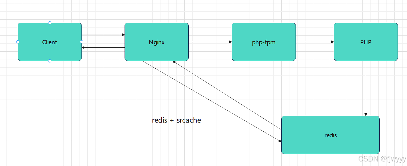 - 未命中:将请求转发给 PHP-FPM 处理,PHP 生成内容后,Nginx 再将其缓存到 Redis,同时返回给客户端。