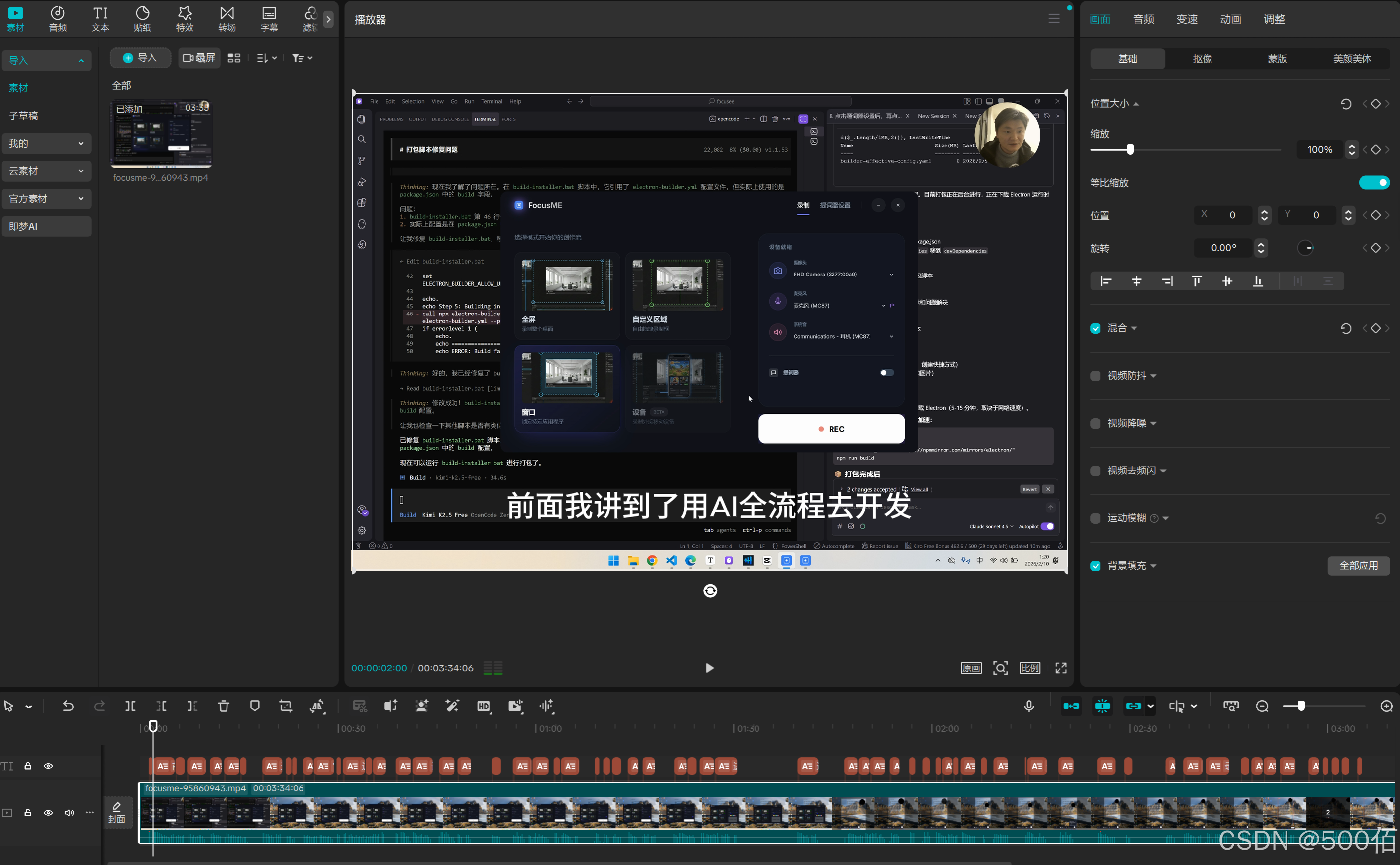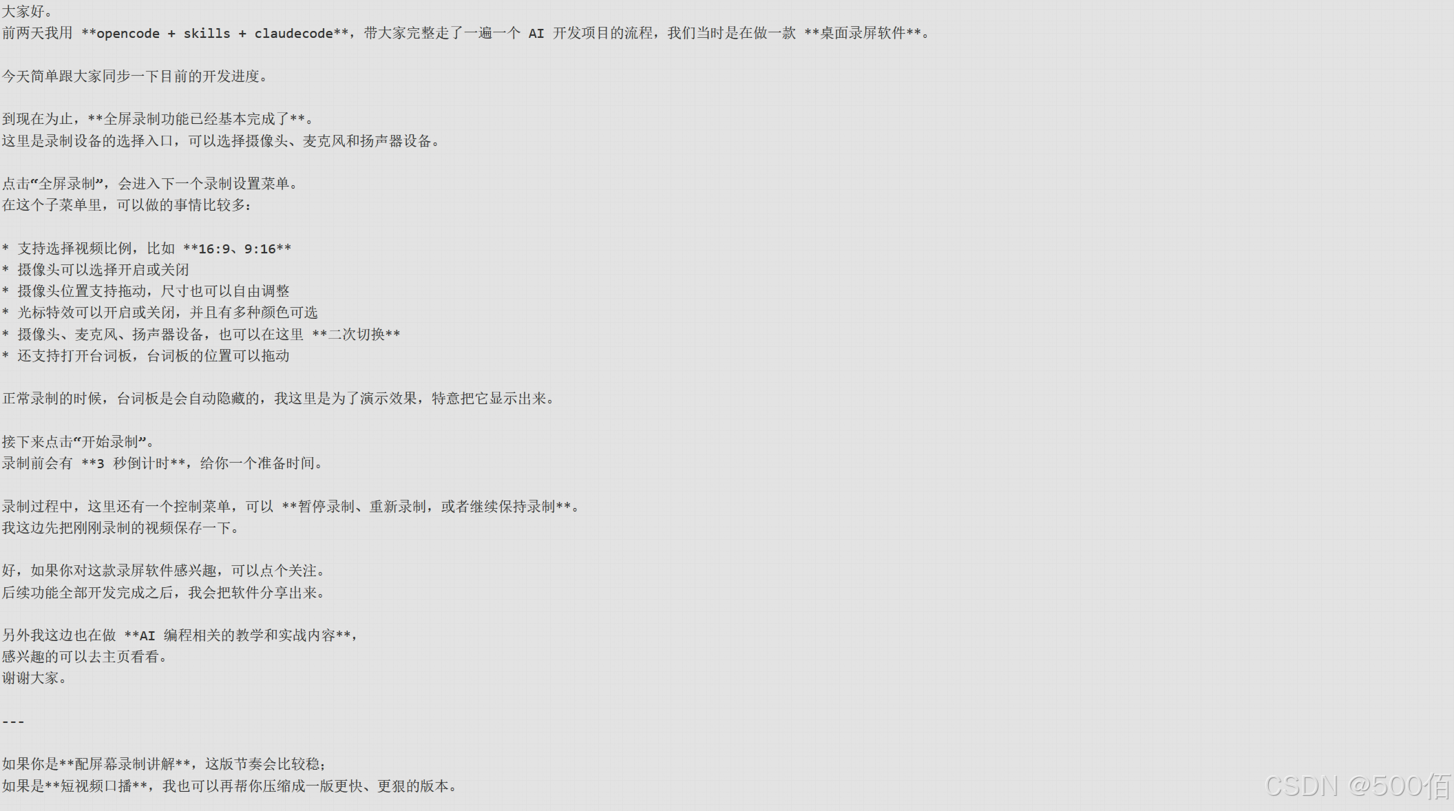 最近这段时间,开始沉迷一件事,在抖音录制我AI写代码、做实战开发的视频,用opencode / claudecode / Agent skills 等大模型进行AI项目开发,耗时7个晚上,最晚的一次,写到了夜间3点,录制了5个视频,开发消耗AI大模型token 数1500左右。