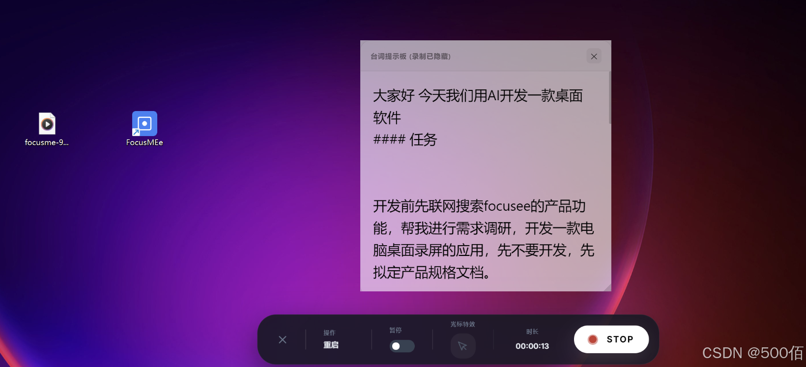 这次我开发了一款桌面录屏APP,名字叫做focusME,目前已经开发完成,可一键安装在我们的桌面,接下来讲解一下整个开发过程。