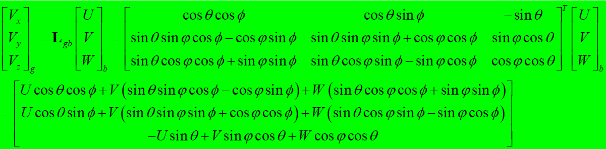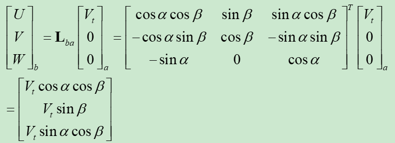 第一步先将气流坐标系中的飞机速度投影到机体系: