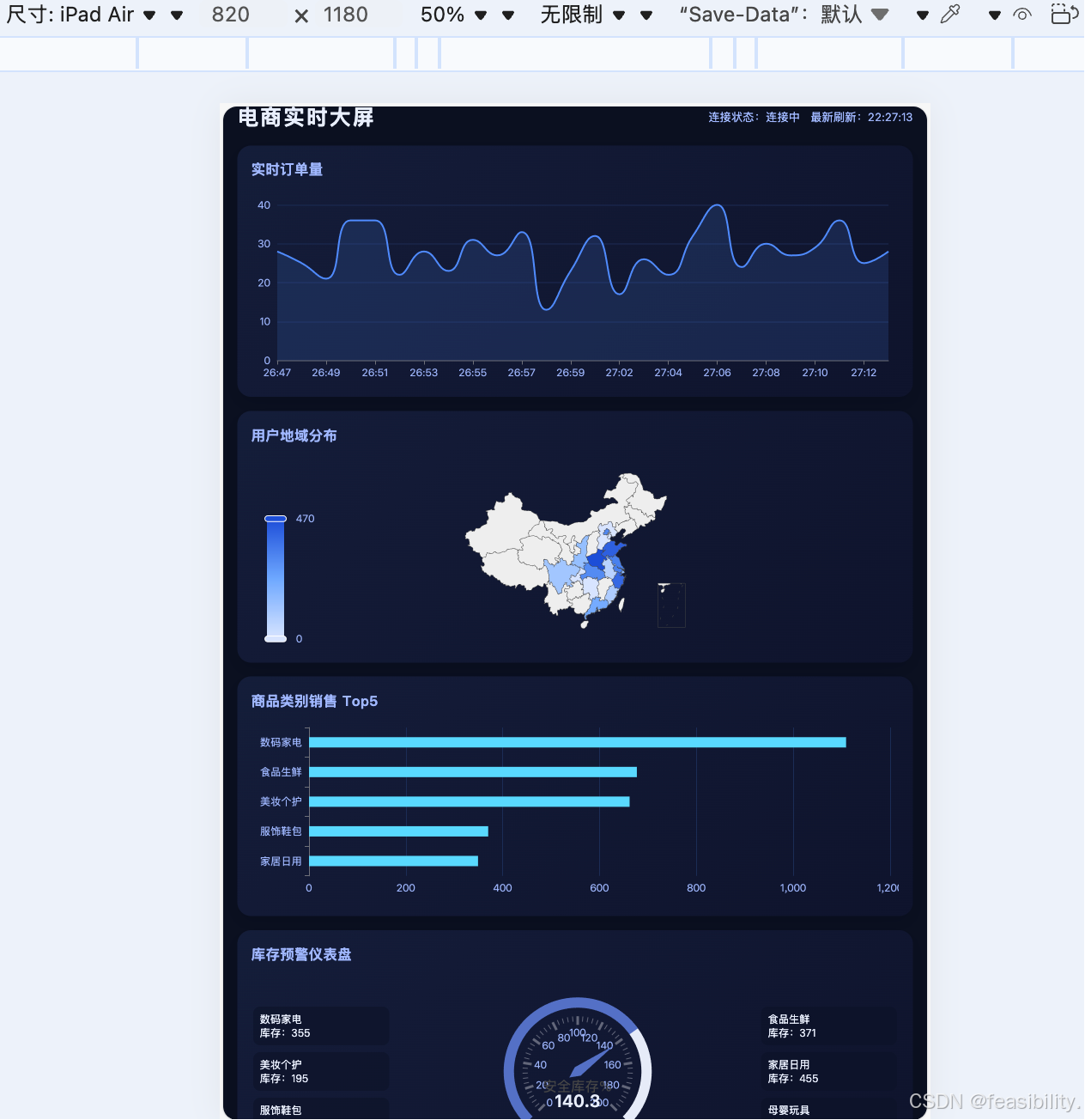 在数据驱动决策的时代,实时数据大屏已成为企业监控业务状态的核心工具。本文构建一个高性能的电商实时数据大屏,涵盖前端可视化、后端数据推送和全端响应式适配等关键技术点。