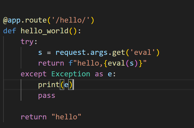 因此查询到接口是/hello/<format string>。这里可以考虑python模板注入了。先输入表达式看会不会被渲染,只要被{{}}包裹都能被渲染