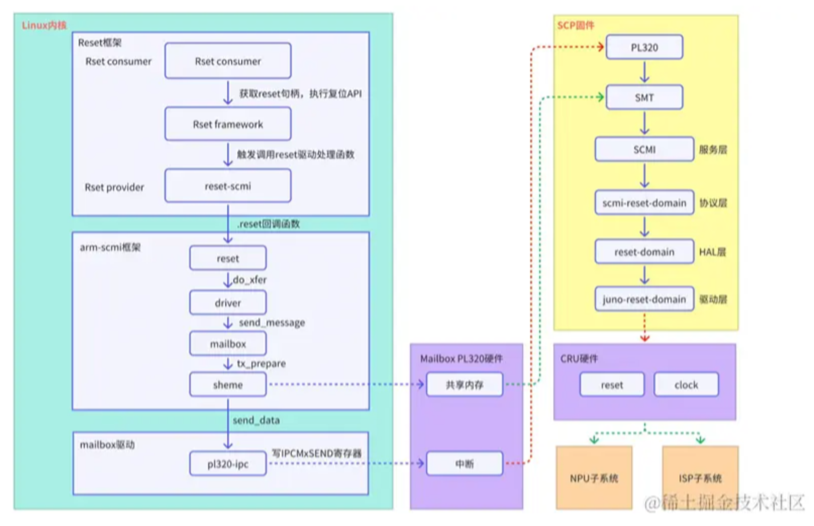 1)重点关注Linux framework调用reset driver到SCP的过程;