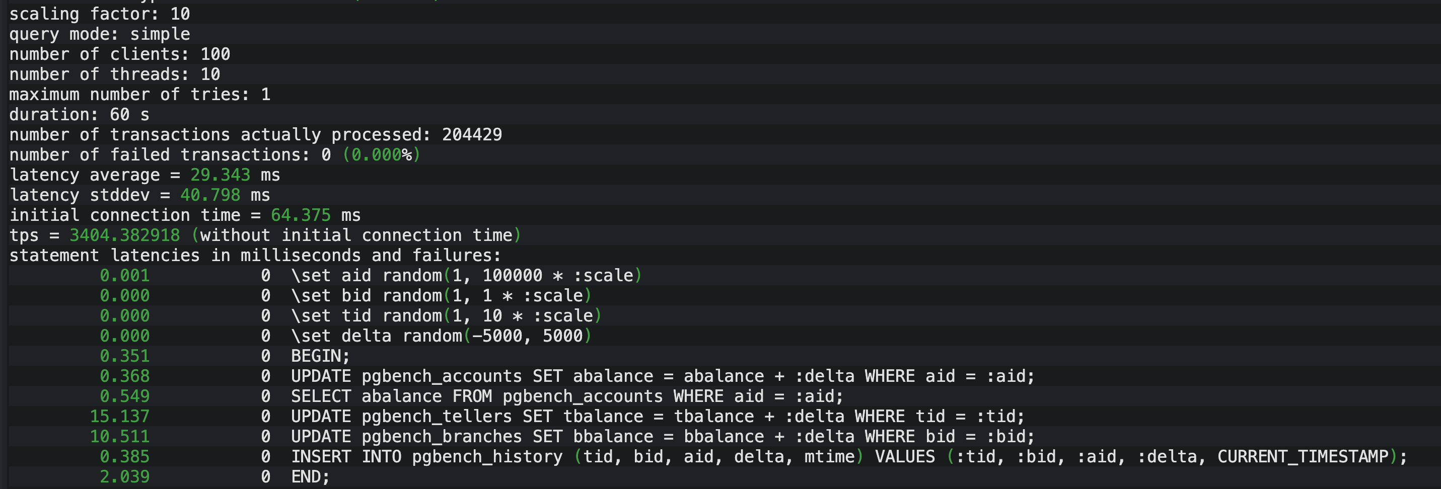 为了精准模拟"纯更新"带来的压力,我没有使用 pgbench 默认的混合模式,而是编写了一个专用的 update.sql脚本,强制数据库只做高频写入。