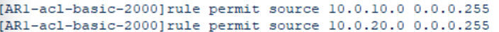- 配置acl,匹配需要访问的公网的流量,匹配vlan10和vlan20访问公网的流量