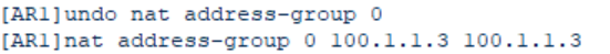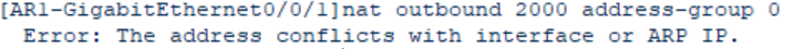 - 进入到AR1的g1接口(需要部署NAT的接口),调用acl。(注意:地址池的地址不能和接口的IP地址冲突,需要修改地址池的地址-购买新的公有地址)