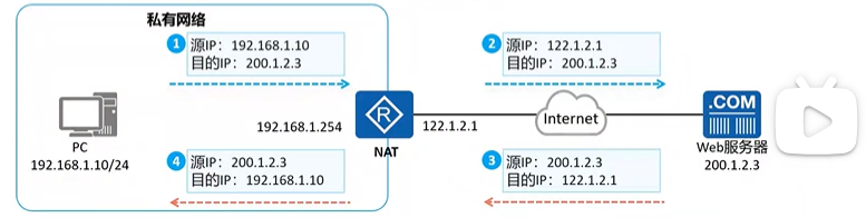 - 没有NAT技术,PC可以访问web服务器,但是不能回包。