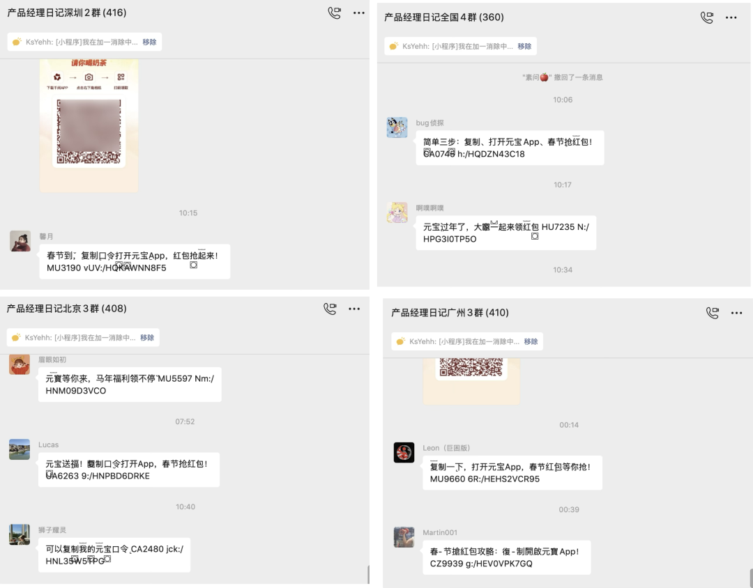 微信也是丝毫不惯着他们,不管是自家的元宝还是对家的千问,裂变链接全给封了,没办法只能玩野路子发口令了。
