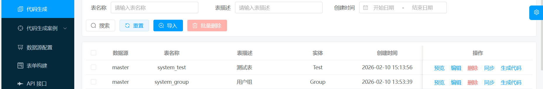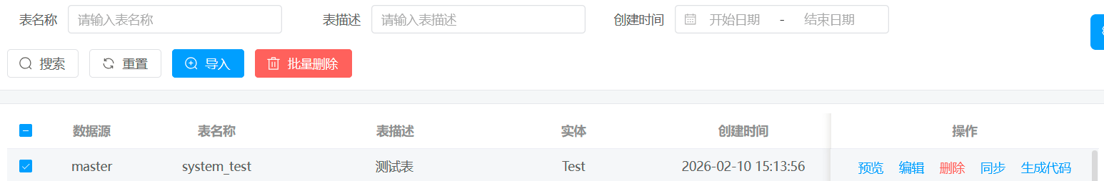 v-hasPermi="['system:test:create']"这一句给删了重新刷新就可以了,这里大半部分开发就算完成了,下面的就是根据自己的需要进行微调就可以了。
