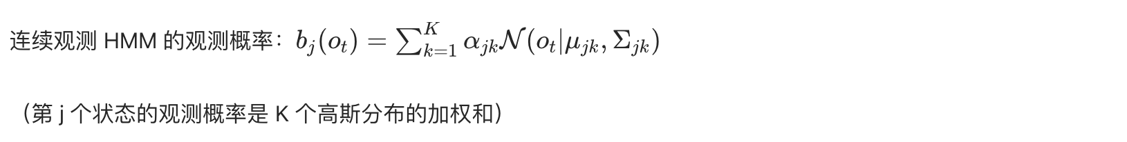 - 连续观测 HMM 常被称为 GHMM(Gaussian HMM),是语音识别的核心模型