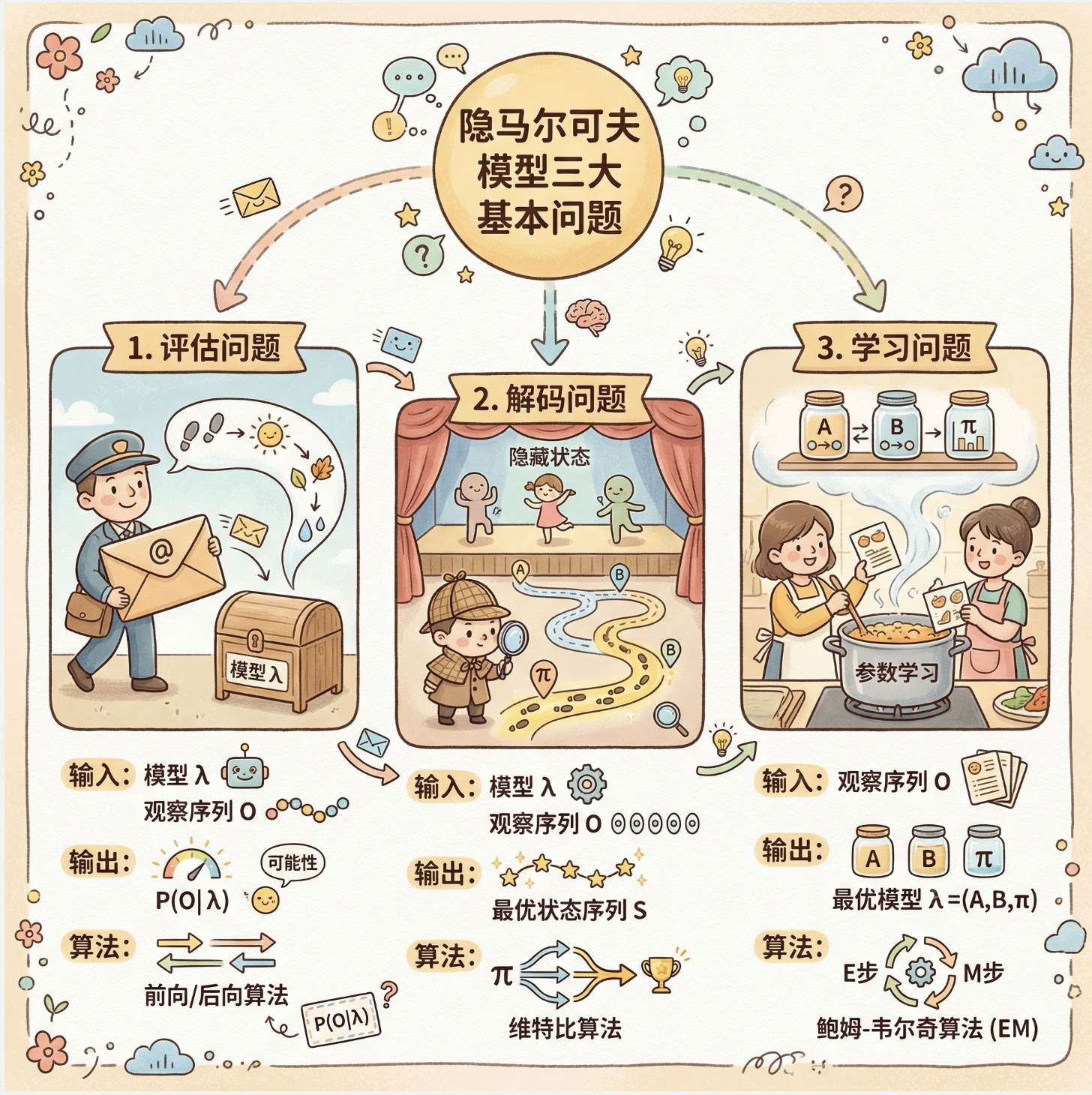 [Mermaid 思维导图:HMM 三个基本问题](#Mermaid 思维导图:HMM 三个基本问题)