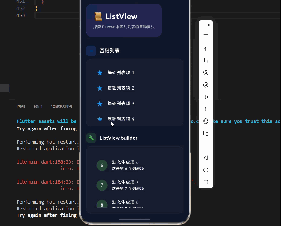 ListView 是 Flutter 中最常用的滚动容器组件,掌握它的各种用法对于构建数据密集型应用至关重要。