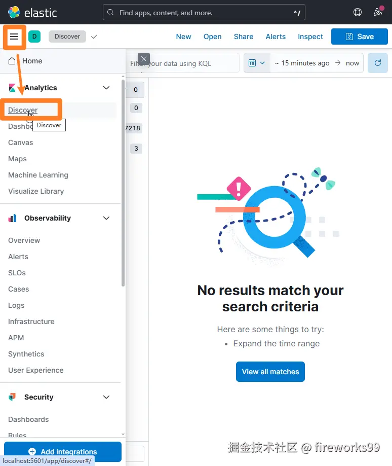 docker-compose up -d启动容器,然后访问localhost:5601(kibana)。