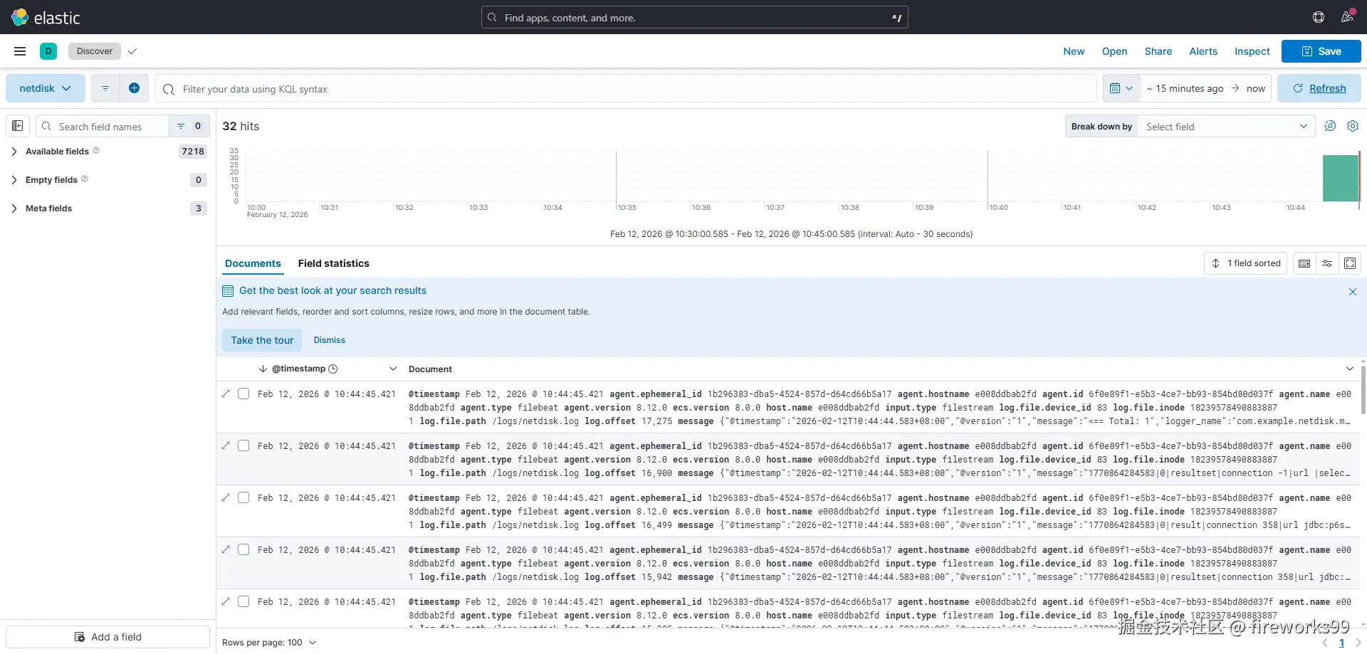 注意这里filebeat的volumes里的相对路径../netdisk/logs:/logs,这里../netdisk是我Spring Boot项目,而/logs是 logstash-logback-encoder 输出日志的位置。