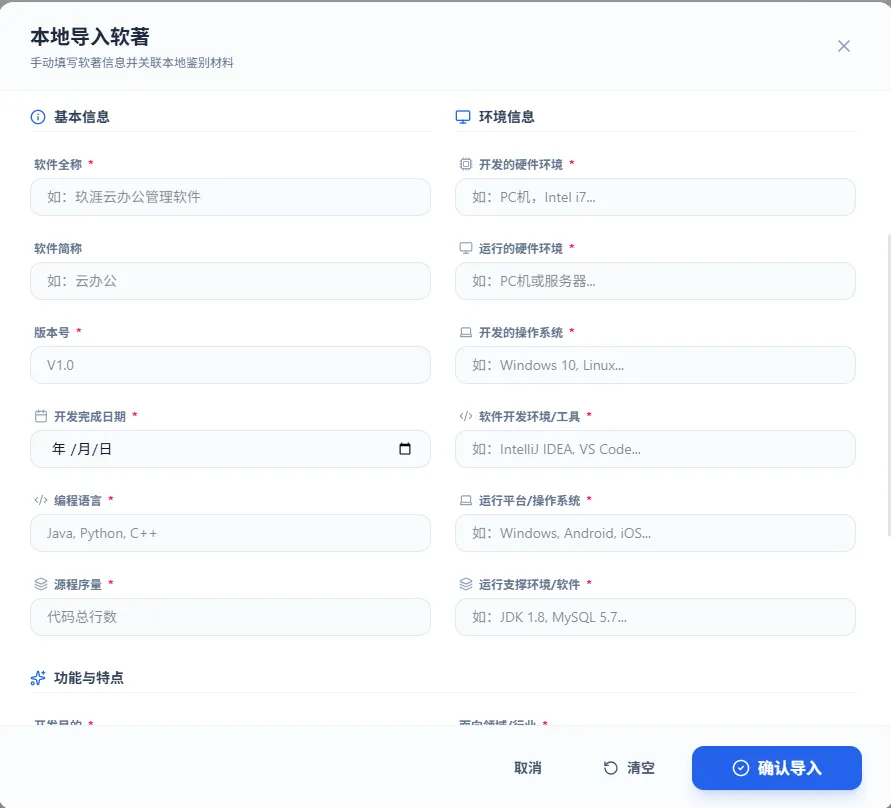 如果你的软著不是在玖涯软著AI生成的,那么你就要选择 本地导入。