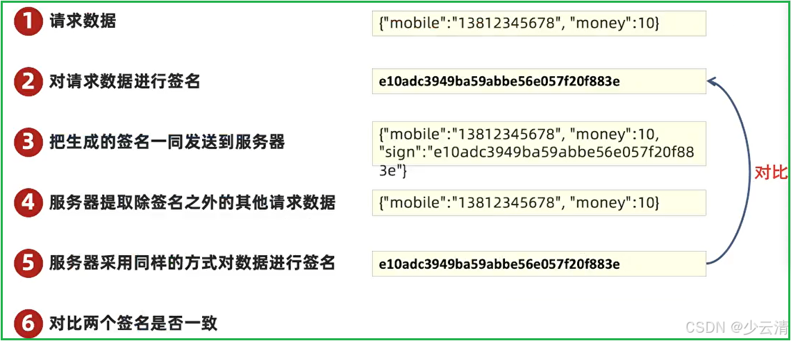 - 数据签名:在发送请求的时候,增加一个无法伪造的字符串,用来保证数据在传输的过程中不被篡改。