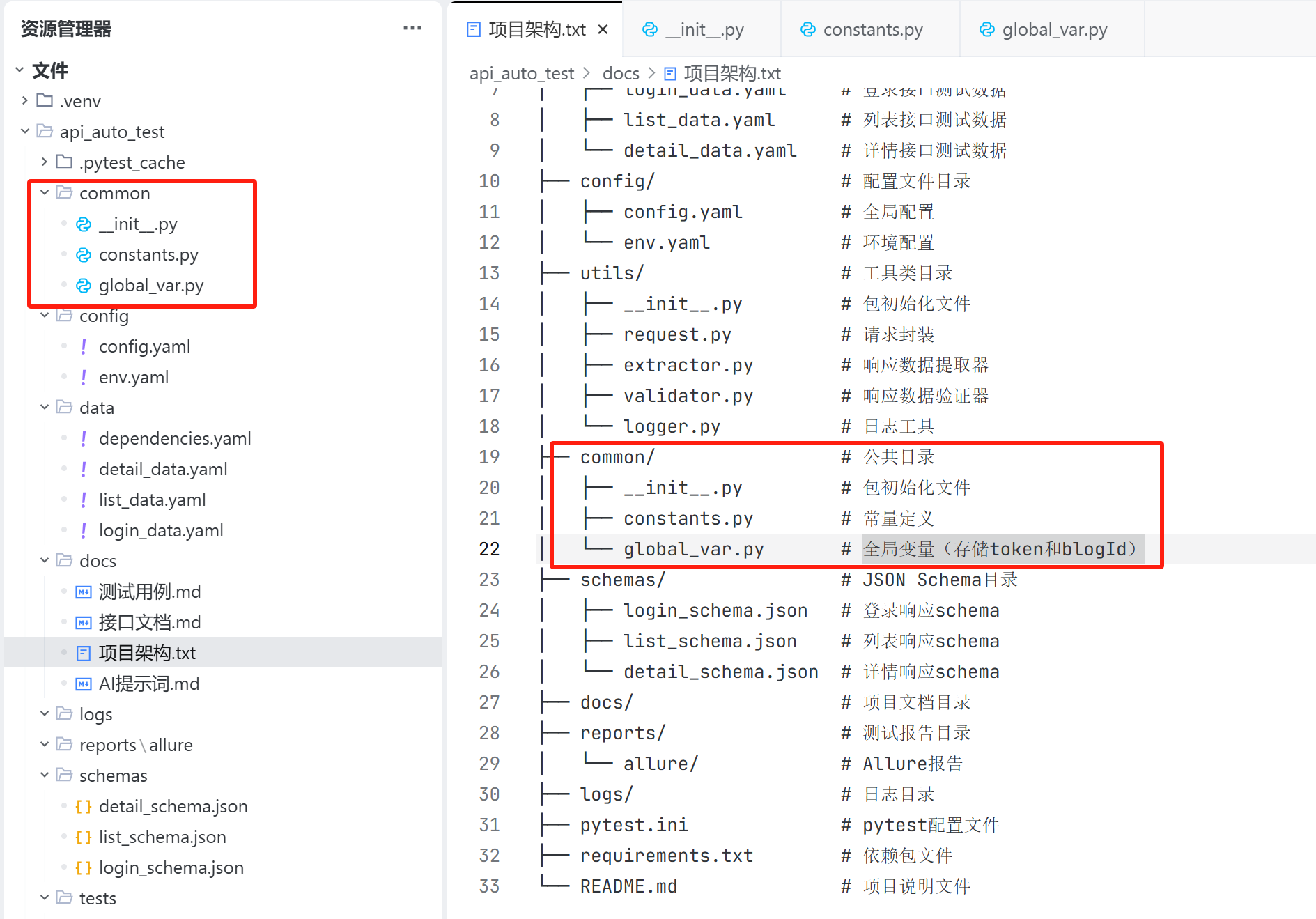 common 目录是公共目录,用来保存项目中用到的常量以及全局变量;
