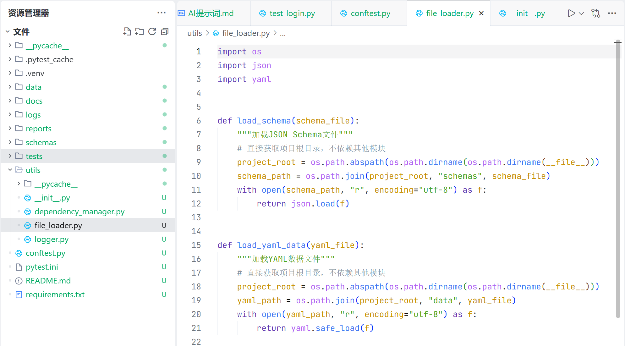 因此这一块可以作为公共代码,提取出来,放到 util 工具包中。因此增加一个 file_loader.py 文件,如下: