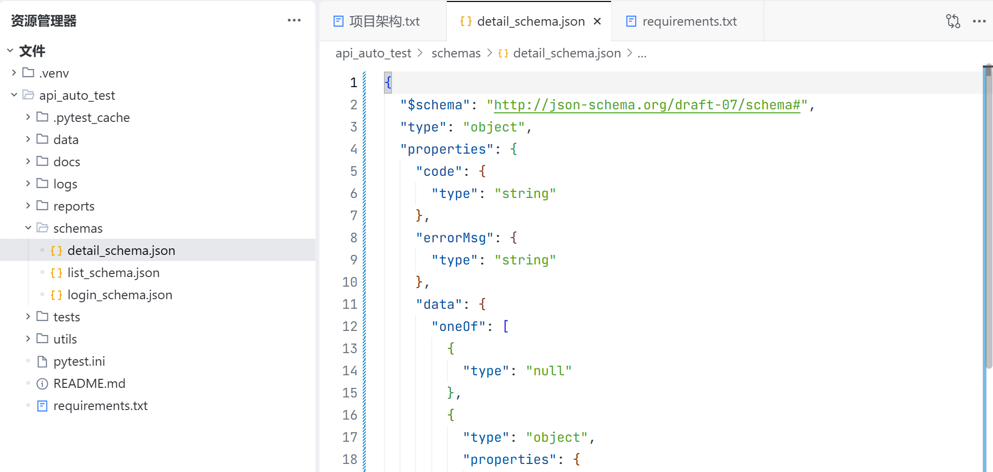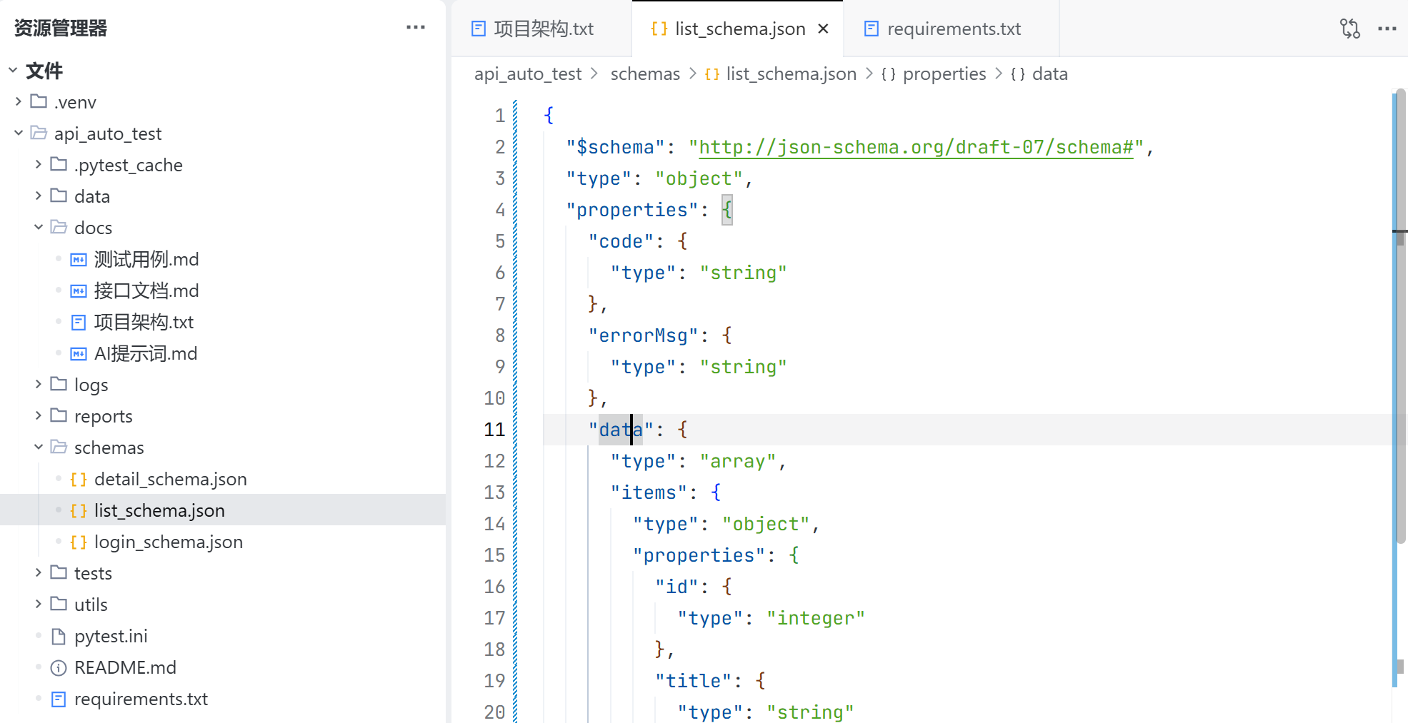 schemas 目录用于存放 jsonschema 文件,用于校验各个接口返回值的字段及其类型;