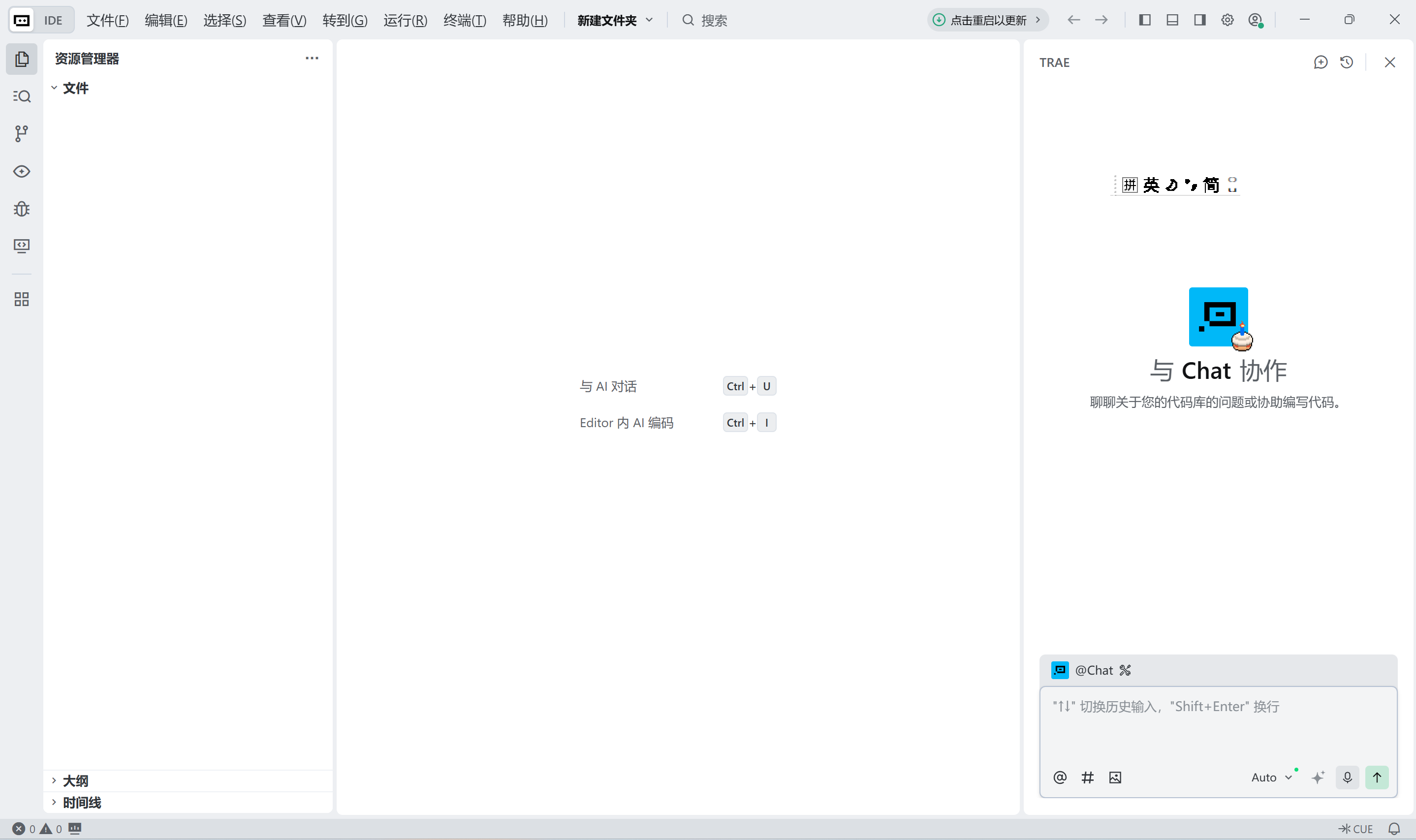 Trae 工程初始界面如下: