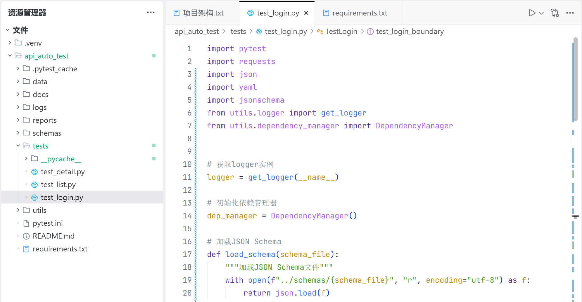 test_login.py 用于存放登录接口的测试用例的代码实现;