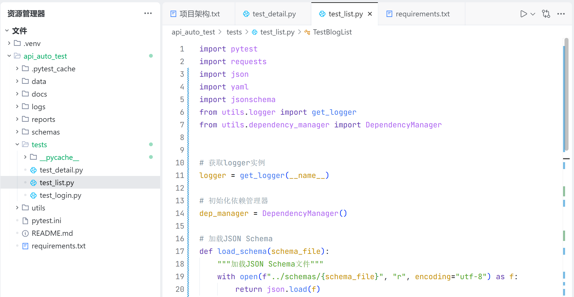 test_list.py 用于存放获取博客列表接口的测试用例的代码实现;