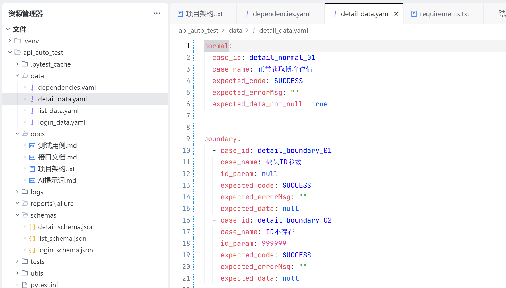 detail_data.yaml 用于保存获取博客详情接口每一个测试用例预期返回的结果,用于校验接口的返回值是否正确;