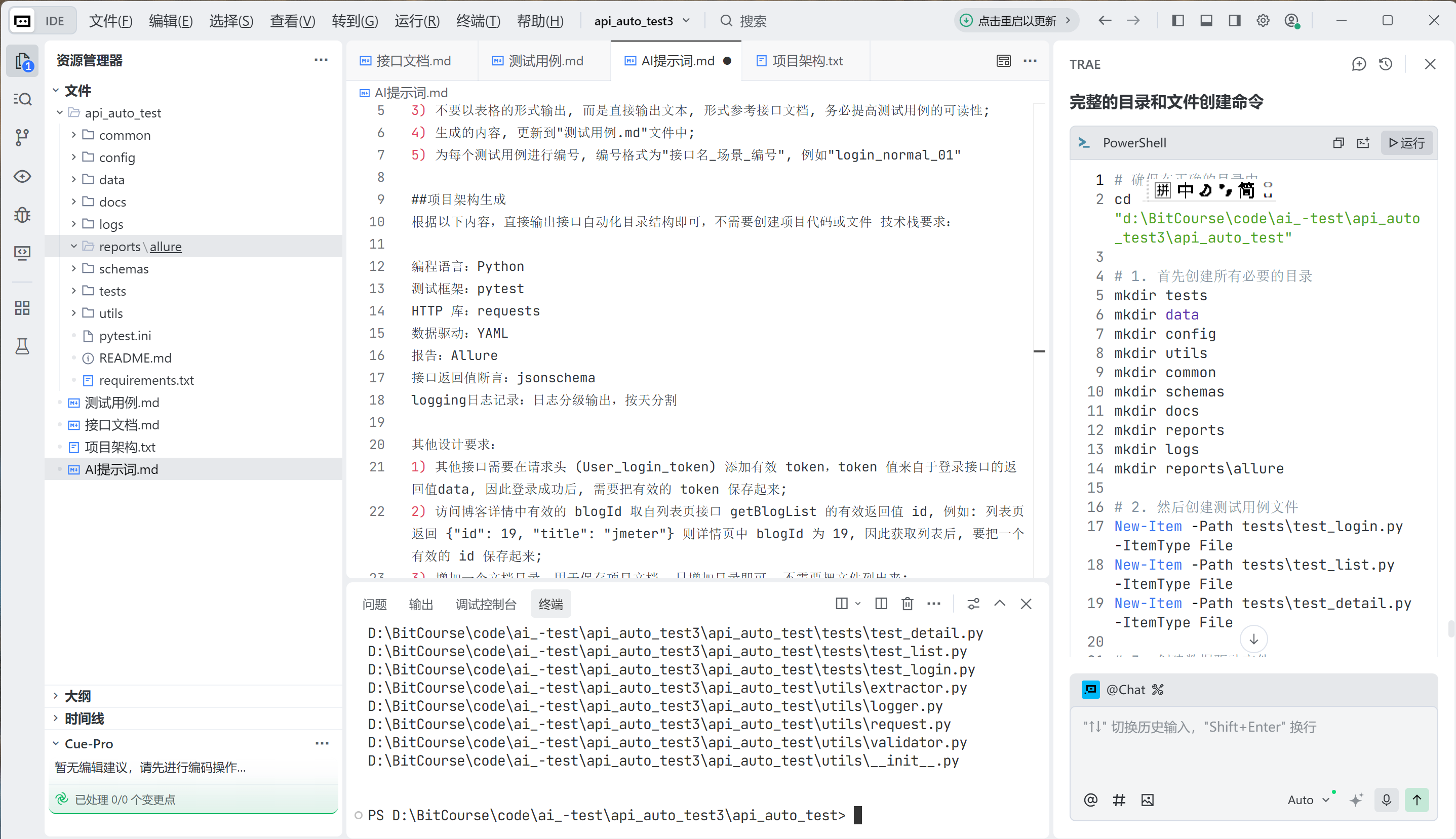 本文将系统阐述如何构建一个基于 Trae 生成接口测试用例、利用大语言模型(LLM)能力、自动生成高质量 pytest 测试代码的工程化方案。