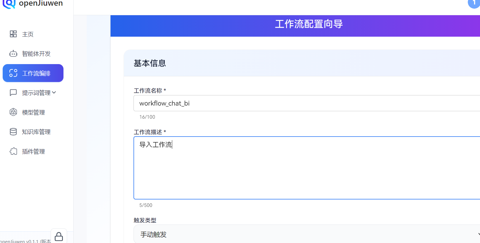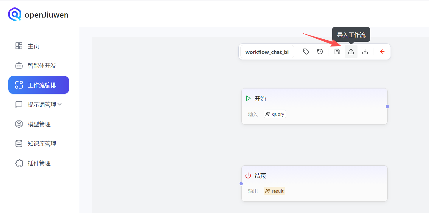 输出:只输出一个 JSON,格式必须符合 openJiuwen 工作流导入结构: