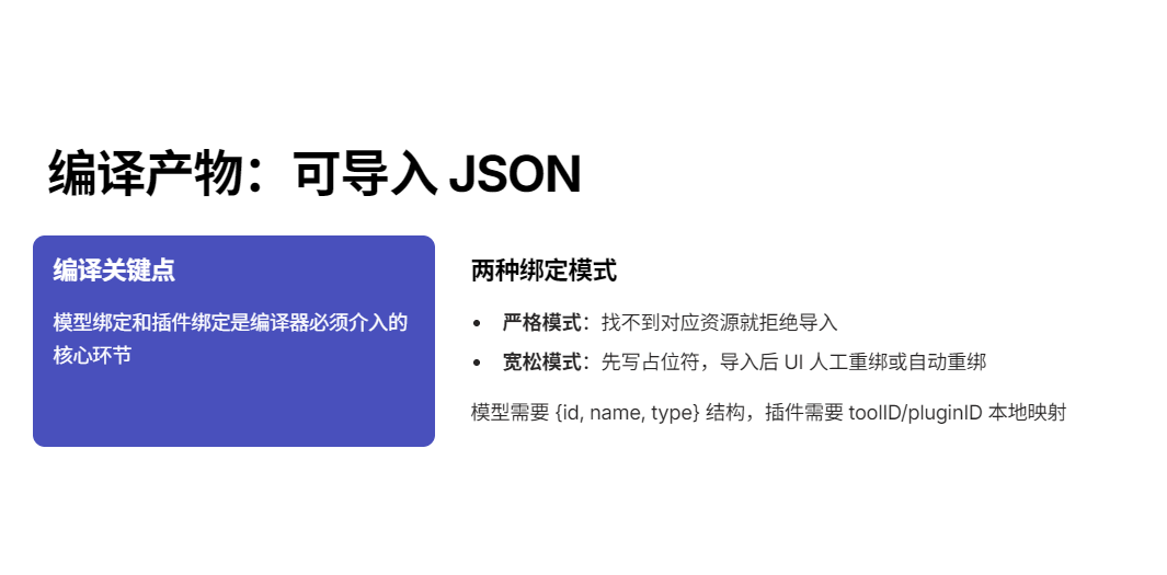 除此之外的内容------例如画布位置、空间 ID、账号信息、平台内资源标识------对"迁移"来说反而是负担,因为这些信息在本地环境大概率不可用,甚至会误导导入端做错误绑定。