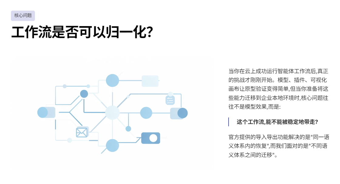 当工作流不再只用于保存和回滚,而是作为"智能体能力迁移的载体"时,我们应该如何设计导入与导出?
