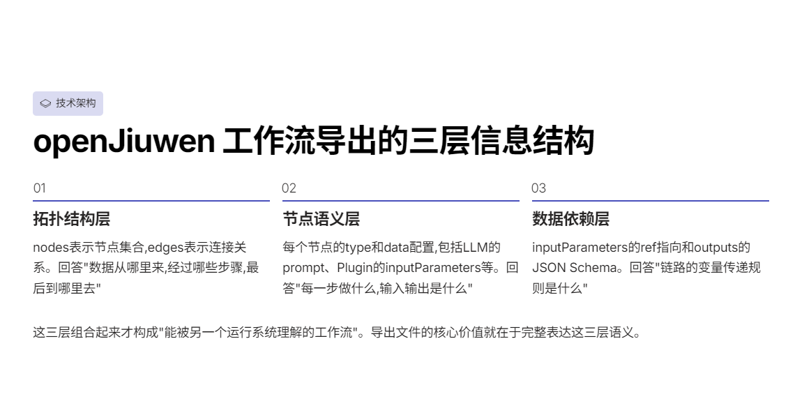 而 openJiuwen 的工作流导出格式,本质上解决的是另一件事: