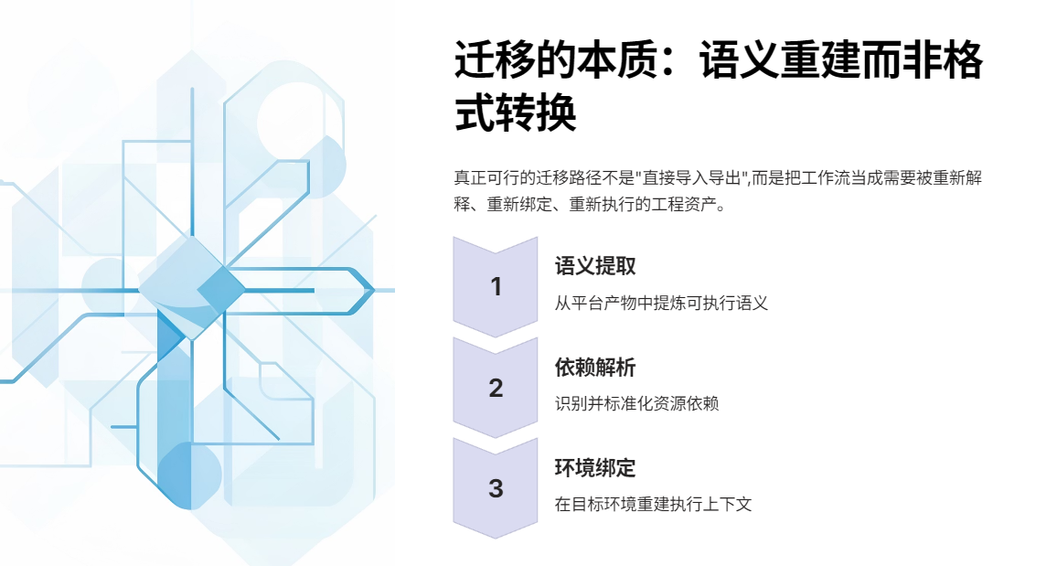 我们试图迁移的是"平台产物",而不是"可执行语义"。