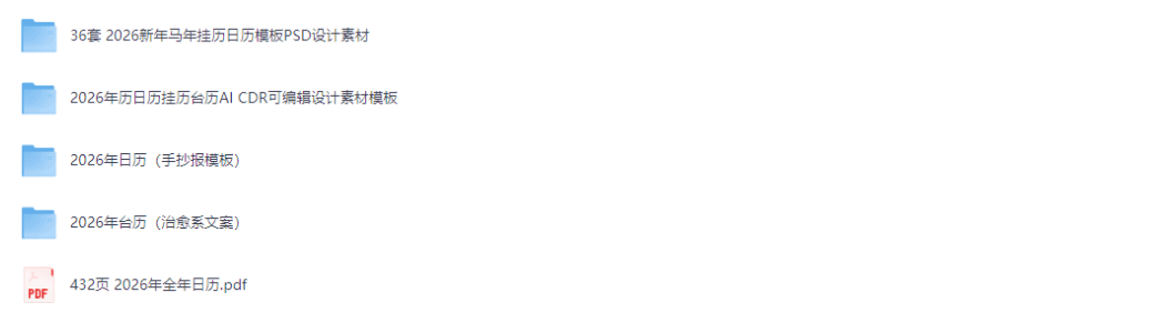资源名称:2026年日历PSD模板合集(多格式可编辑)