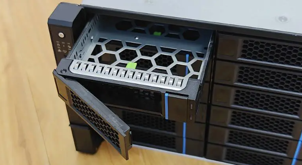 上面的服务器可以装24块机械硬盘,假如一块盘4TB,那么这一台服务器就是96TB。服务器内部装磁盘的东西长这样:
