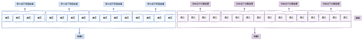 磁道是某一盘面的某一个磁道展开,它展开之后可抽象成一维数组 。而柱面是整个磁盘所有盘面上的同一半径磁道的展开,它可以抽象成二维数组。