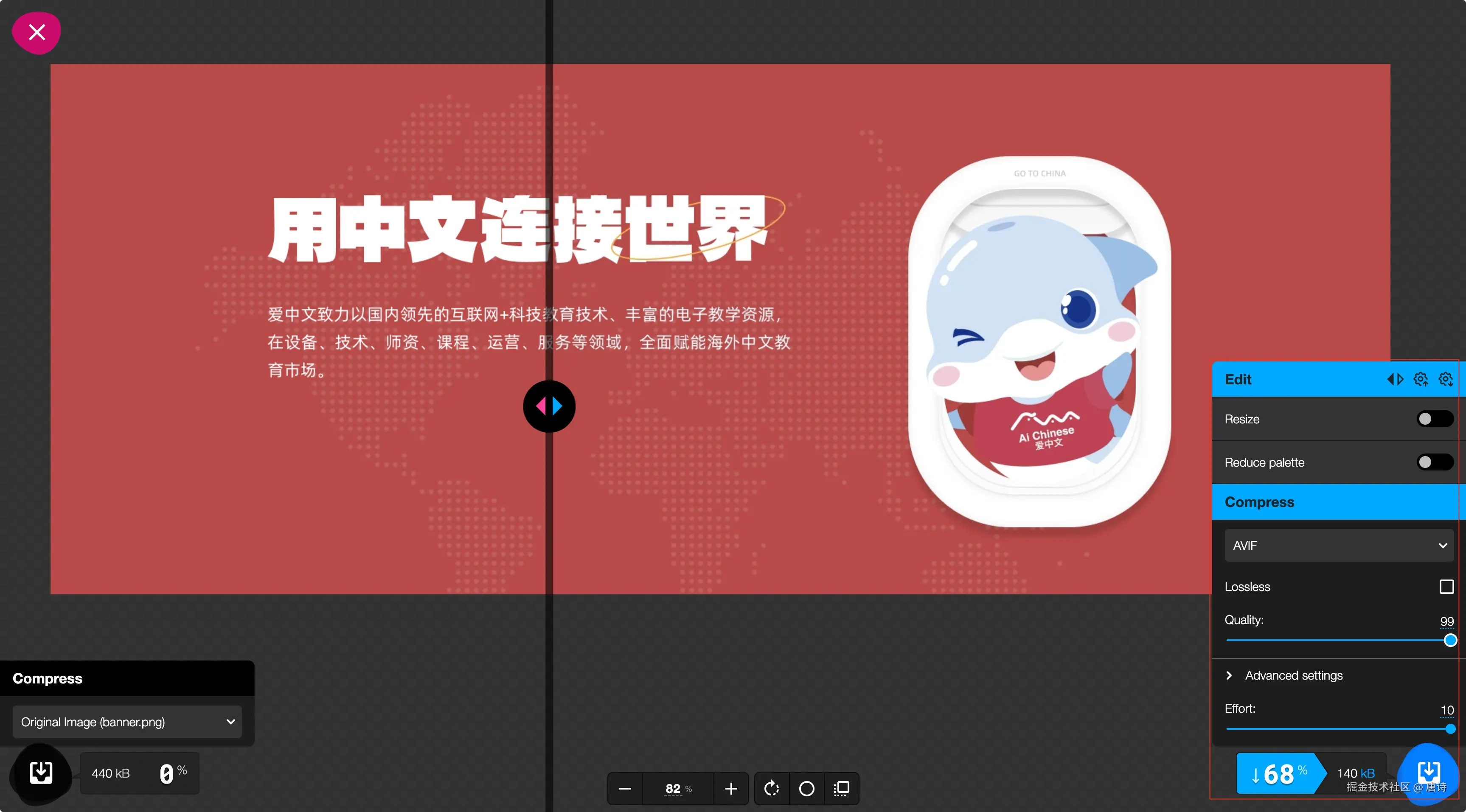 图片压缩工具是 squoosh.app