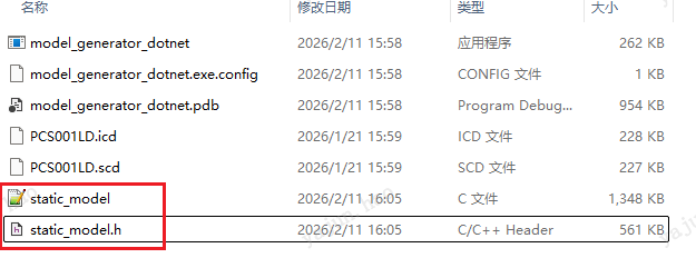 会在相同目录下生成static_model.c和static_model.h文件: