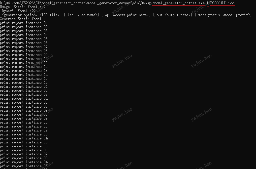 将待转换的*.icd文件和编译后生成的model_generator_dotnet.exe放在一个目录下面。通过win10的cmd命令,跳转到exe所在目录,执行如下命令,运行exe: