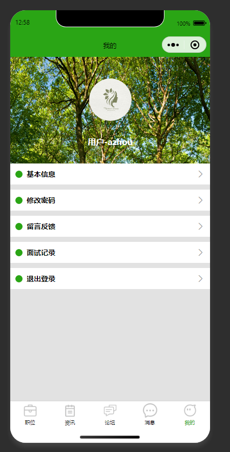 用户个人中心功能页面 提供用户基本信息管理、密码修改、留言反馈提交、面试记录查看、退出登录等功能