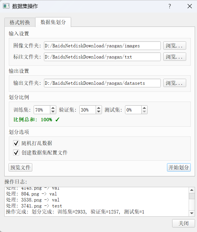 随后,我们使用自己开发的数据集划分工具划分训练集与验证集: