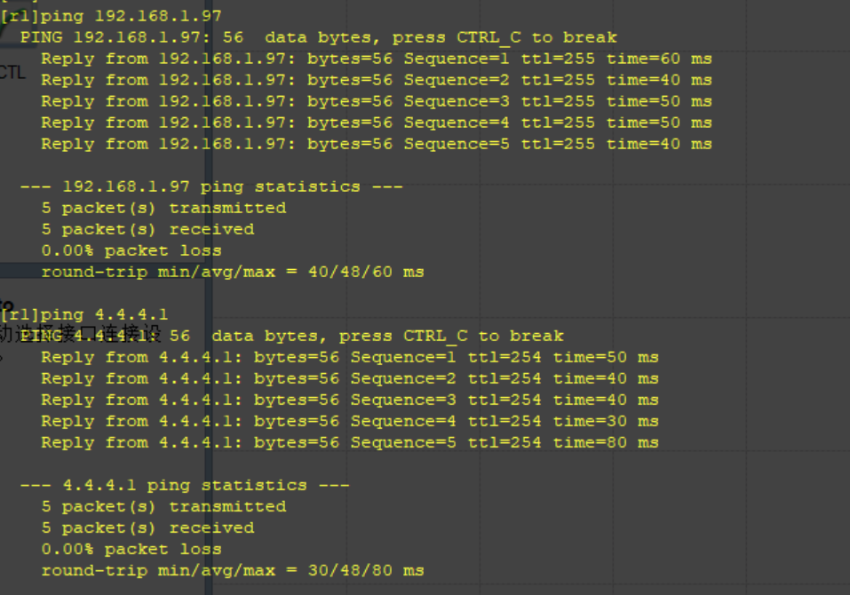 4.3.2 R1 ping R3 的环回和 R4 环回