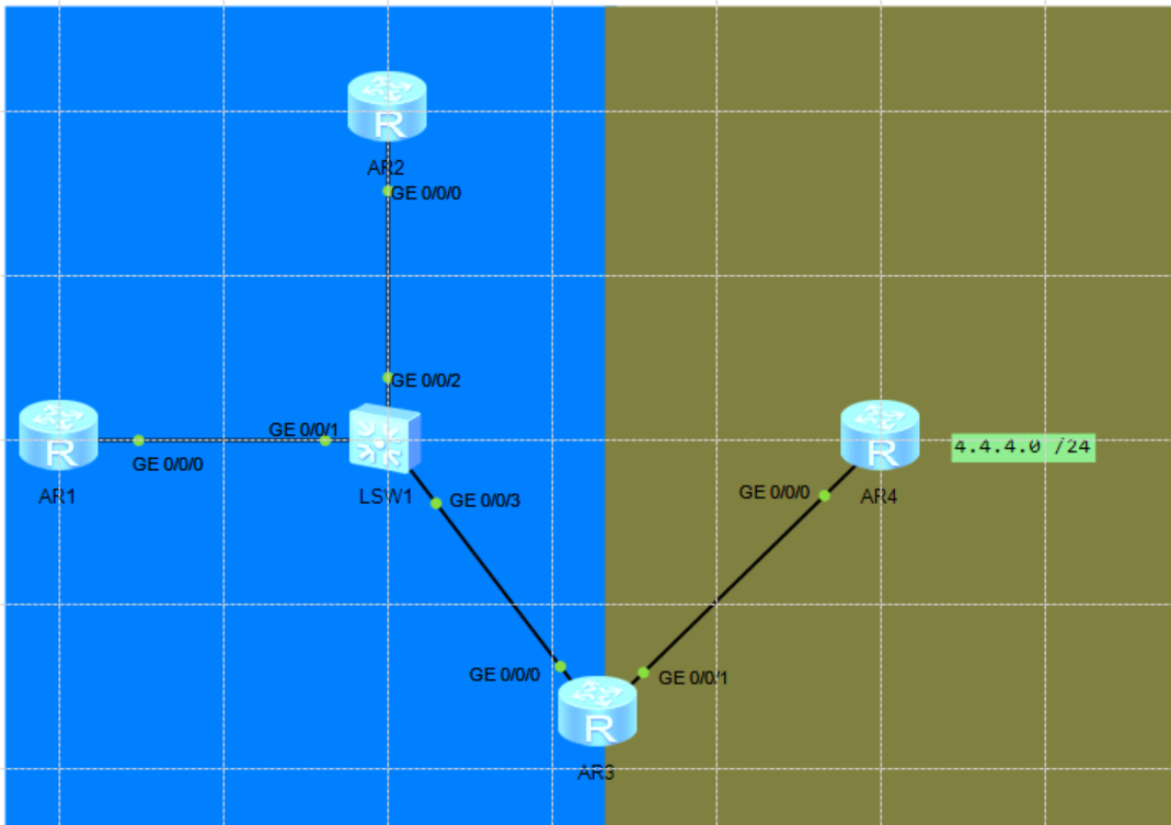 实验要求三是最为复杂与繁琐的,R4环回不能宣告,全网可达,保障更新安全,避免环路, 减少路由条目。
