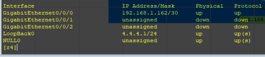 R4环回地址已固定,其他所有网段使用192.168.1.0 /24 进行合理的分配。其中R1-3为区域0,R3-R4为区域1,r3的环回也在区域0。R1,R2也各有一个环回。