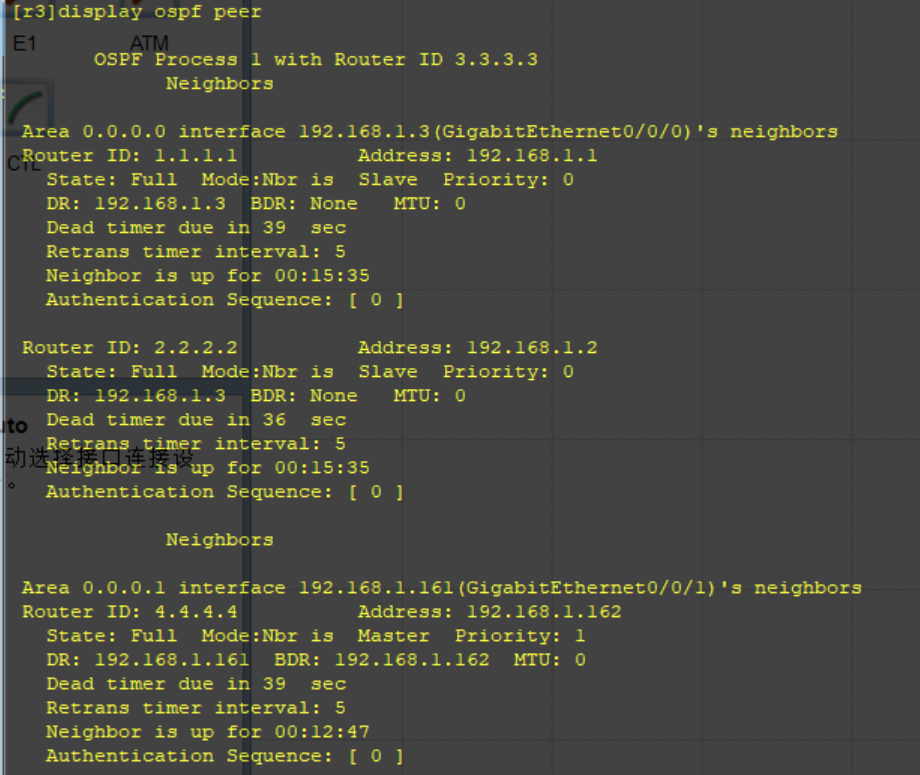 由邻居表可以看出区域0中DR设备都是R3,且是没有BDR设备的。