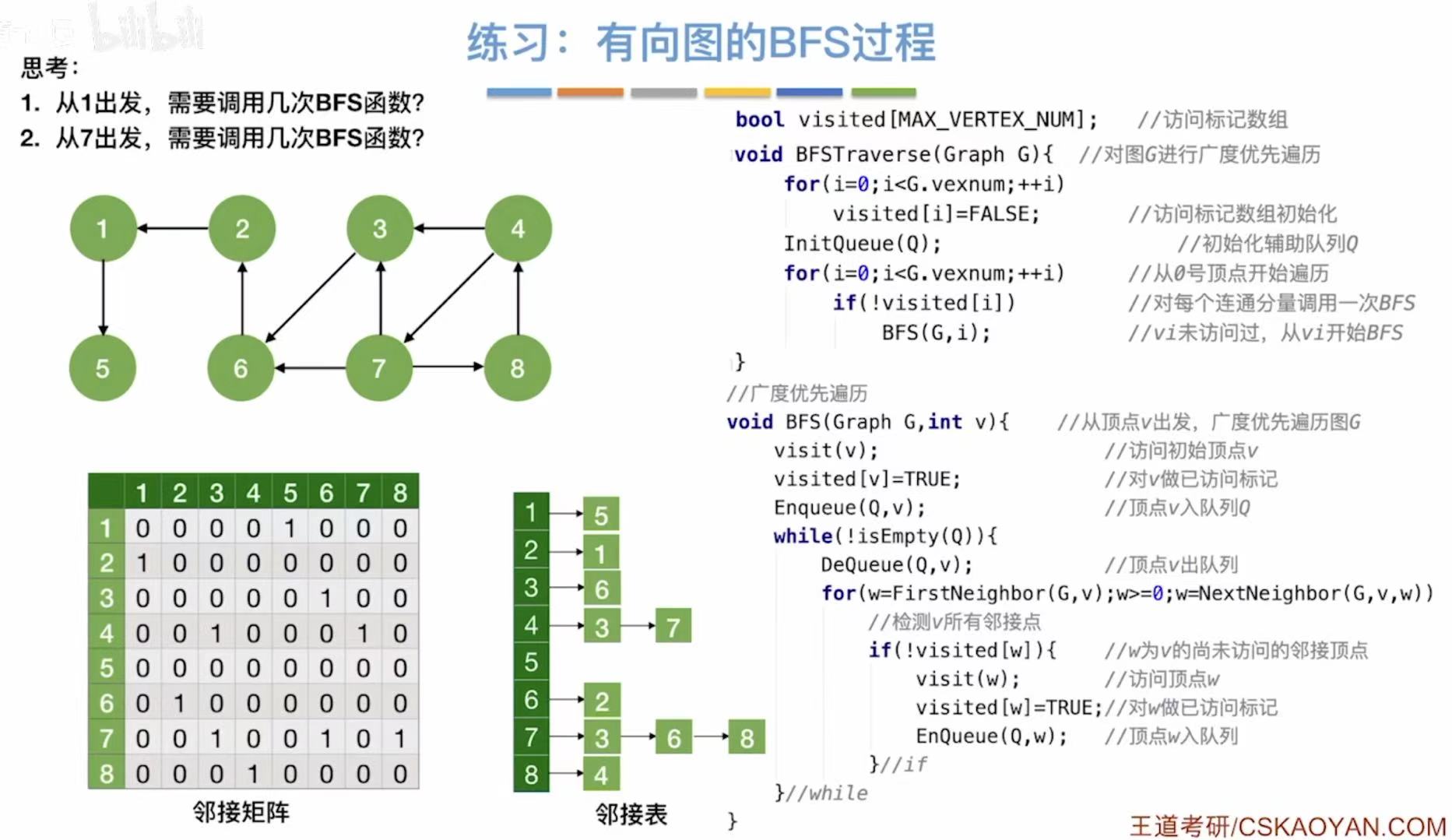 Enqueue(Q, v); // 将顶点 v 入队列 Q(准备开始遍历)