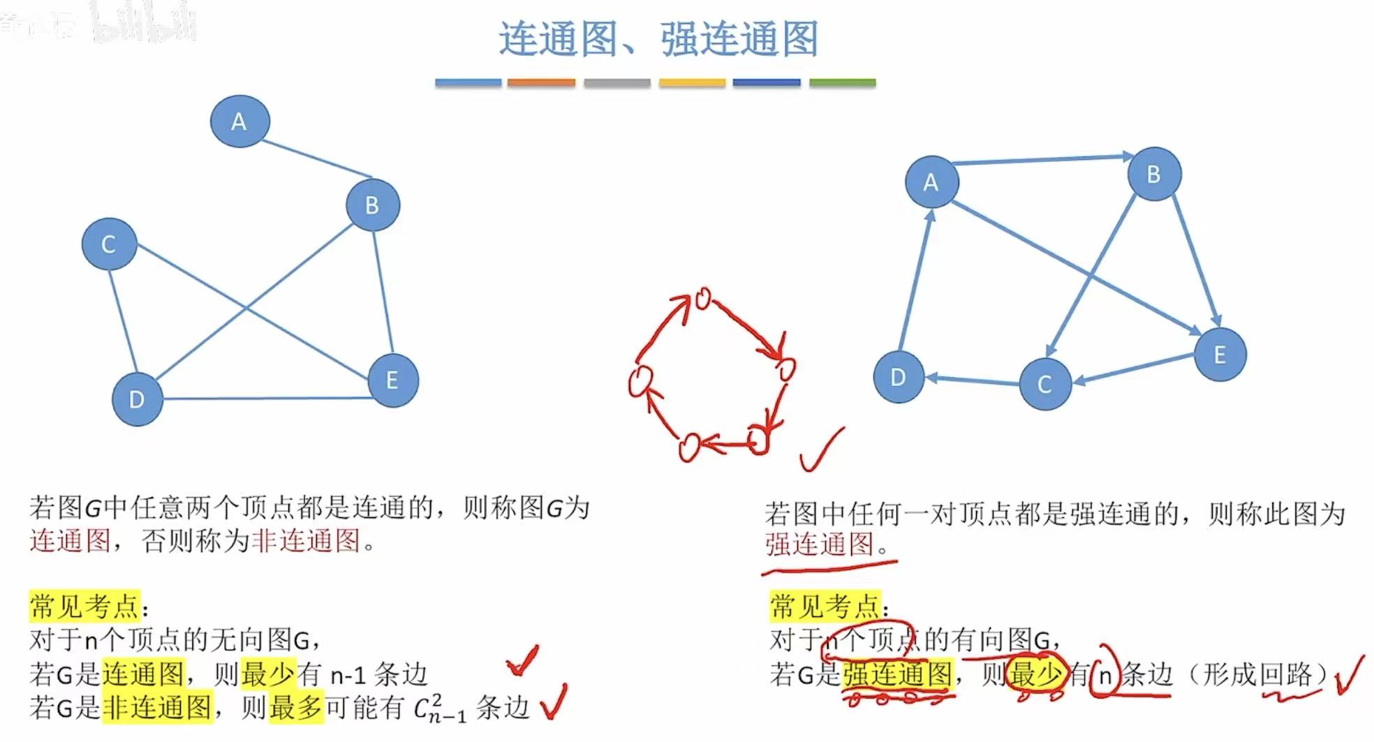 - 强连通图 :任意两点可以正向走得通,也可以反向走得通。